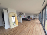 Au rez-de-chaussée, d'un spacieux séjour lumineux grâce à ses 2 immenses baies vitrée de 2,5m de hauteur sur10m de longueur, donnant sur la terrasse et la piscine. Dans la continuité du séjour, une cuisine semi-ouverte avec une arrière cuisine. La cuisine ouvre sur sa terrasse. Une chambre parentale avec dressing et salle d'eau complète ce niveau.