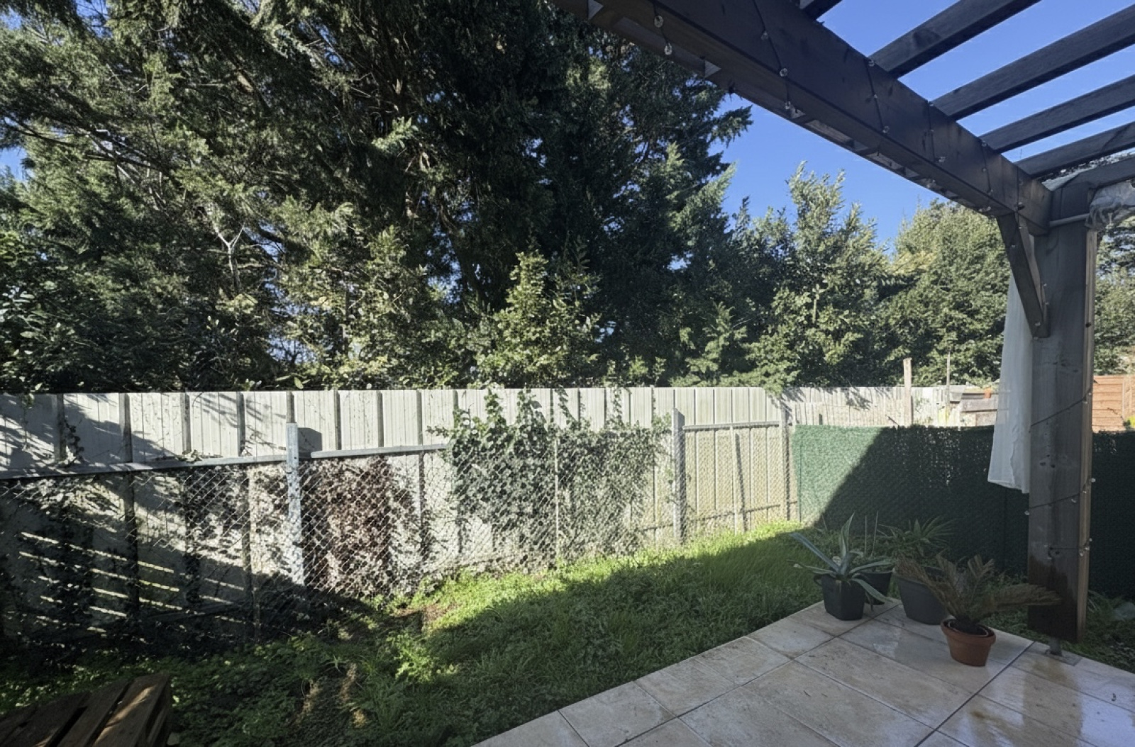 L'extérieur, arboré et lumineux, dispose d'une terrasse, d'un cabanon en bois et d'un jardinet de 57m².