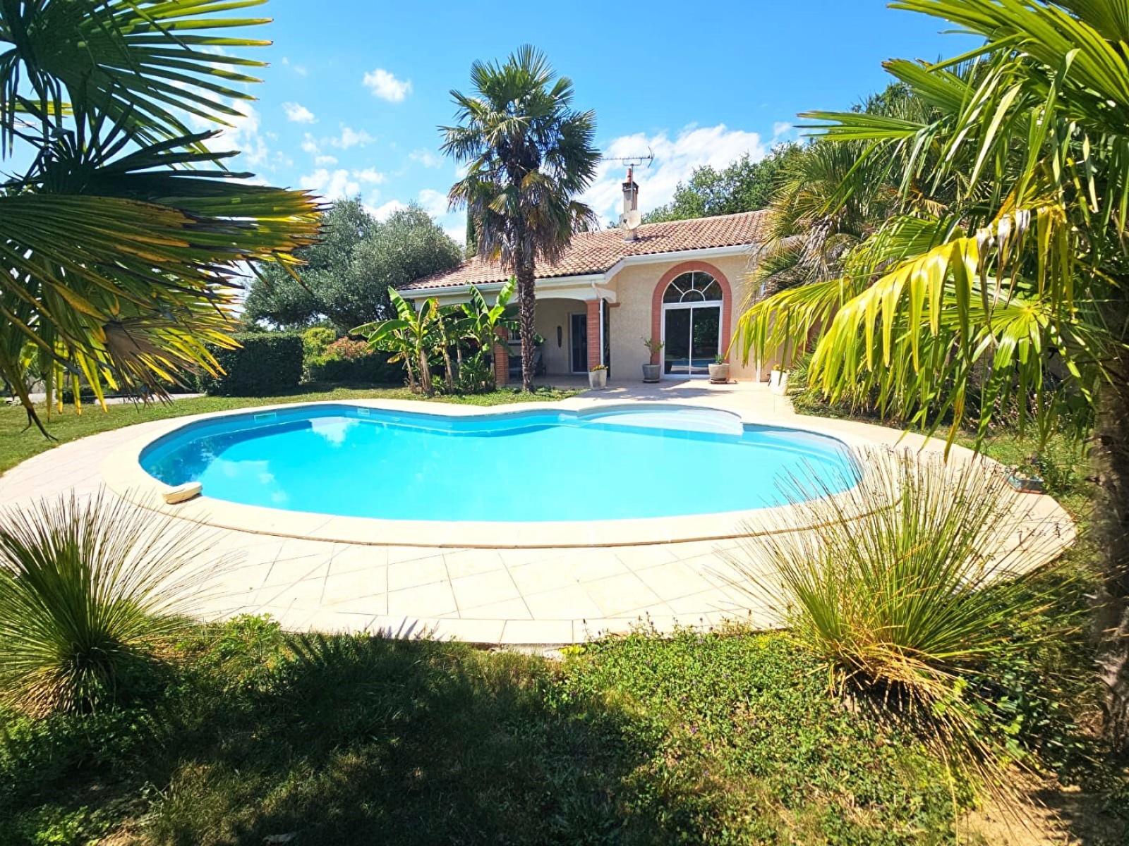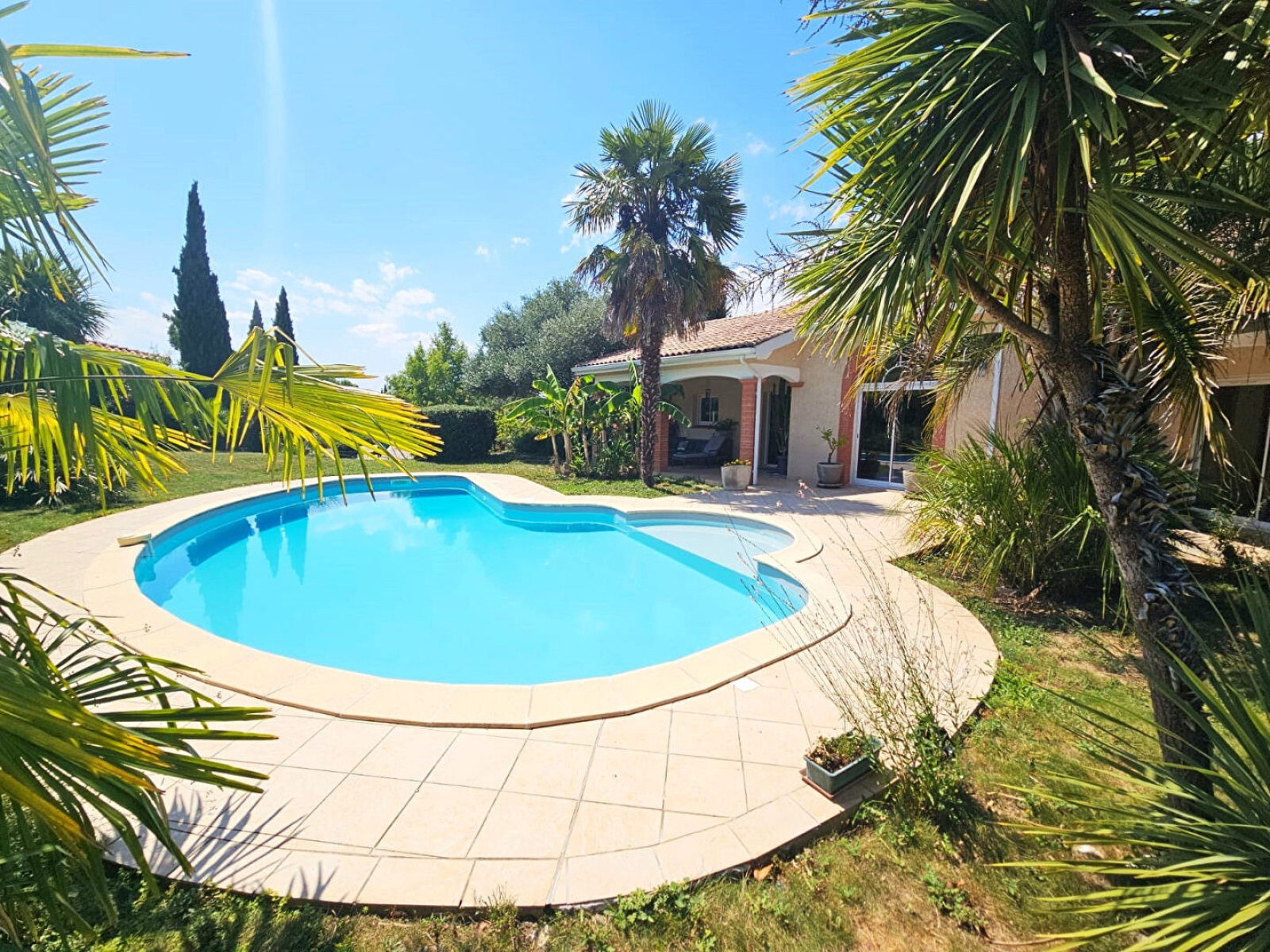 Au calme absolu au milieu de la nature sur la commune de Pin Balma. Proche de toutes les commodités à pied, écoles... à 10 minutes en voiture de la rocade de Balma et du métro Balma Gramont. Cette maison d'architecte de 200m², avec un sous-sol de 100m2, édifié sur une parcelle arboré de 2000m2, avec piscine et bassins a été édifiée en 2002. Elle se compose : D'une lumineuse pièce de vie de 55m², traversante nord/sud, avec d'un côté une rotonde sur-mesure offrant une vue plongeante sur la piscine et de l'autre une vue reposante sur des chênes et la végétation. Une cheminée avec insert réchauffera vos soirées. La cuisine équipée semi ouverte de 20m² offre un accès sur une terrasse couverte et la piscine. Un espace rangement à l'entrée et wc avec lave main complète l'espace jour. Côté nuit : trois chambres de 12, 13 et 15m² avec placards et dressing pour la plus grande. Une salle de bain avec meuble double vasque, douche et baignoire et une deuxième pièce d'eau avec WC offrant un accès intérieur extérieur, pour vous apporter du confort lors de vos baignades estivales. Une buanderie complète le niveau. A l'étage, une vaste mezzanine utilisée en bureau et une pièce supplémentaire pouvant facilement être transformée en chambre. Un garage en sous-sol de 100m² avec portail électrique pour 2 voitures avec plusieurs espaces : bricolage, stockage, machinerie de la piscine, point d'eau, cave à vin, salle des machines avec une chaudière au gaz Viessmann. Vous jouirez également d'une vaste allée en béton désactivé pouvant accueillir une dizaine de voitures. Le gros plus de cette maison est l'univers apporté par le jardin de 2000m² aux allures de parc avec de nombreuses essences rares, la piscine en forme de haricot et les 3 terrasses couvertes autour. L'aménagement paysager de la piscine est méditerranéen, bananiers, palmiers, oliviers, romarin.. Pour les amoureux du zen, un véritable bassin à carpes koïs et un deuxième bassin à poisson avec une fontaine en pierre de taille vous apportera des moments de quiétude. Les plus : - Chauffage au sol, volets roulants électriques, menuiserie alu Technal - Les volumes de demeure - Le jardin de 2000m² paysagé avec bassin et la piscine