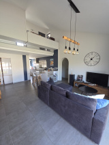 La maison bénéficie d’une belle luminosité, de menuiseries en double vitrage avec volets roulants électriques, d’une climatisation réversible dans le séjour et d’un chauffage au gaz.
