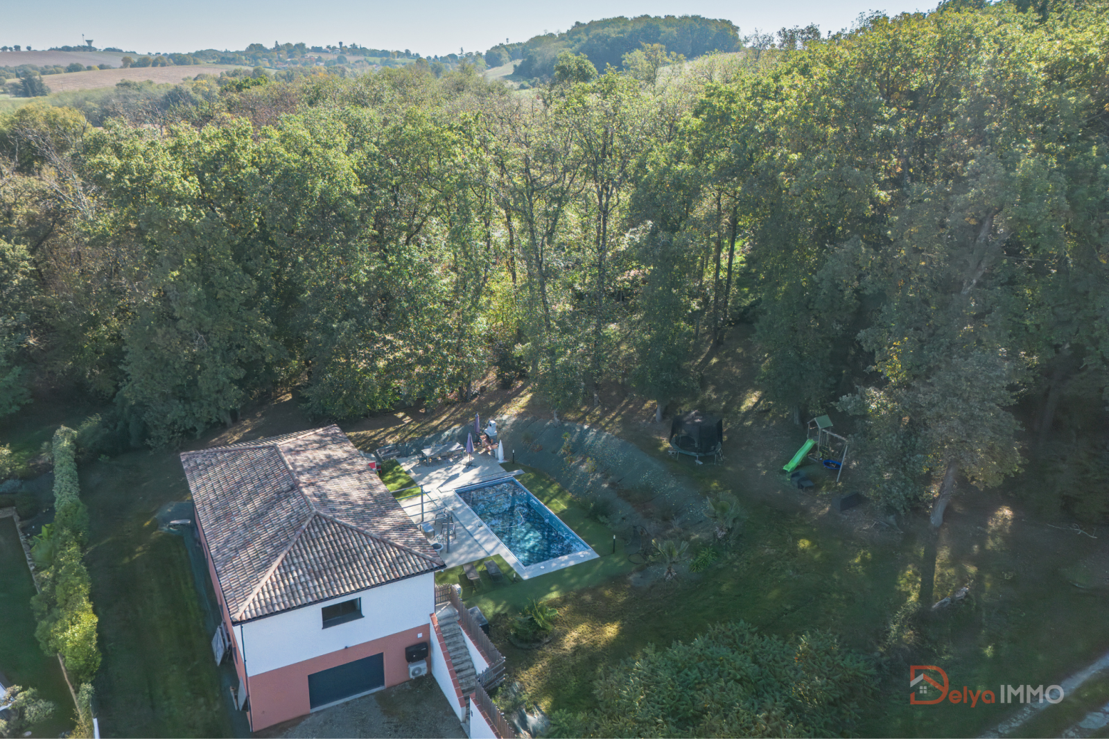 À l’extérieur, profitez d’un jardin intimiste sans vis-à-vis, agrémenté d’une piscine chauffée 9x4 m et d’un bois classé en fond de parcelle — un véritable écrin de verdure pour les amoureux de calme et de nature.