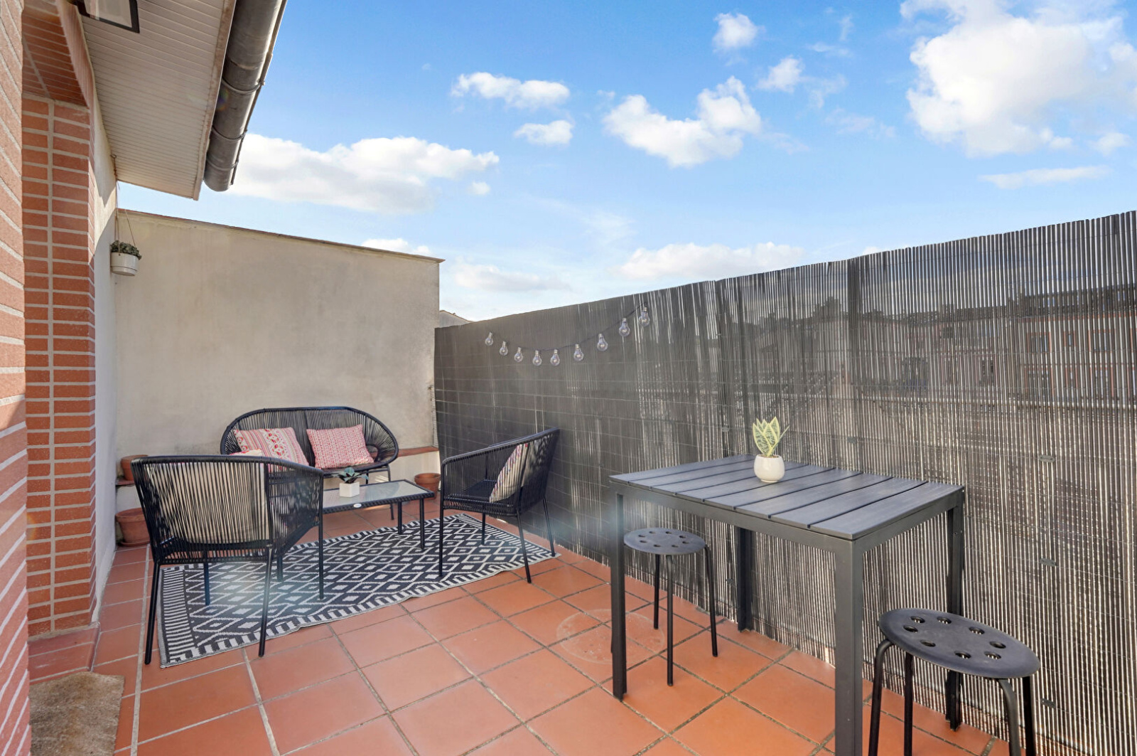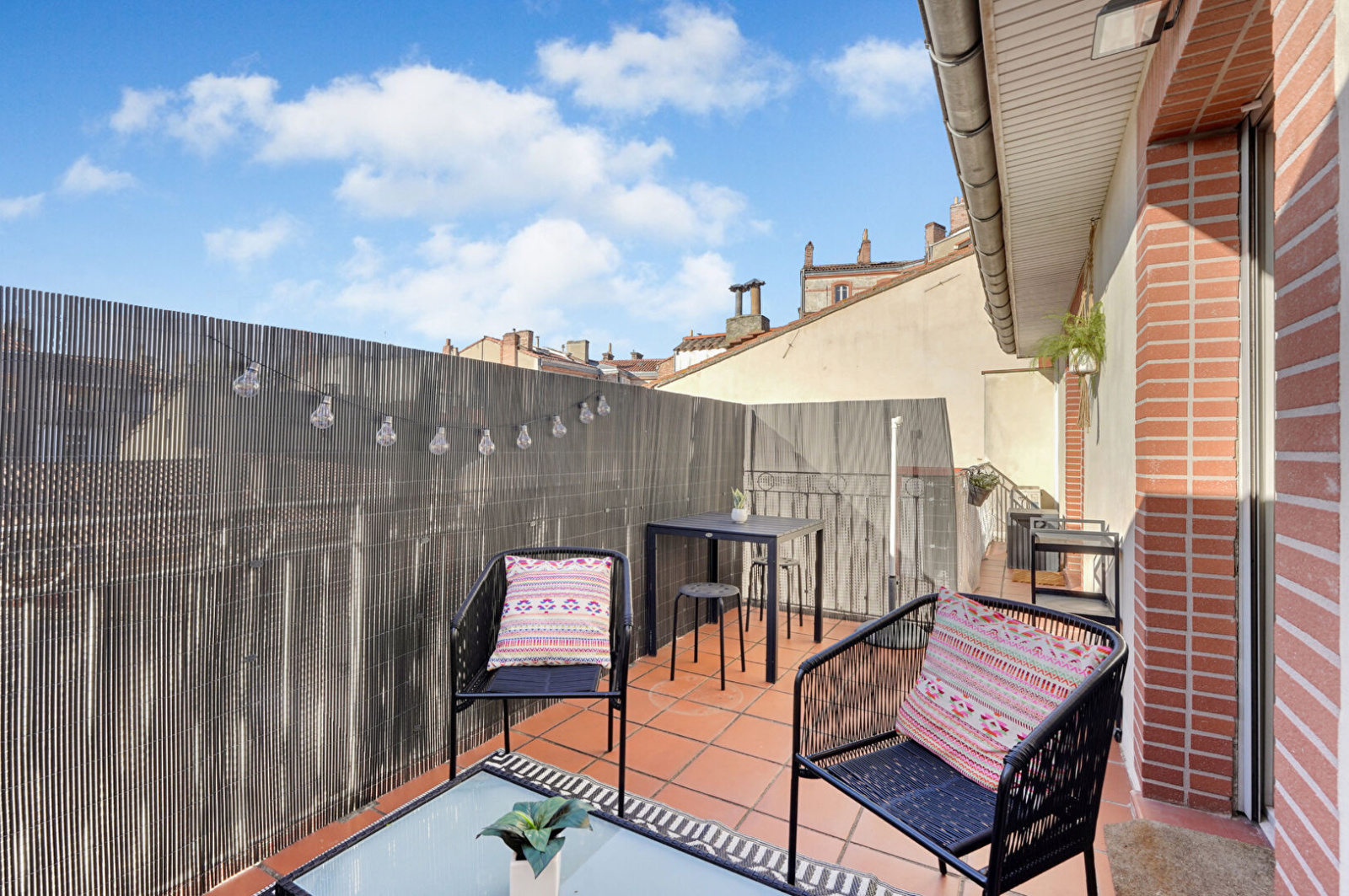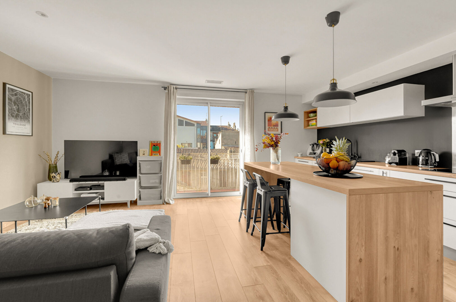 TOULOUSE - À deux pas de la place Dupuy, de la Halle aux Grains et du métro François Verdier. Au dernier étage d'un petit immeuble de style toulousain de 2003 comprenant seulement 6 appartements. L'immeuble est parfaitement entretenu, les combles viennent d'etre fraichement isolés. L'appartement est bien classé énergétiquement en C et A. Ce spacieux T3 de 65m2, entièrement rénové en 2019 avec des matériaux de qualité, se compose : d'une entrée avec placards, d'un espace de vie exposé Sud de 31m2 avec cuisine américaine de marque toute équipée. L'espace jour s'ouvre sur une agréable terrasse de 14m2 exposé sud. Le coin nuit se compose de 2 chambres de 9 et 14m2, une salle de bain, et de WC séparés. Un cellier complète le tout. Vous apprécierez : - L'emplacement - La qualité de la rénovation et la climatisation gainable ( chaud / froid) - La terrasse exposée sud Possibilité d'acquérir une place de parking couverte en option. Situé dans un quartier prisé, cet appartement est rare sur le secteur, à visiter sans tarder. Contactez nous pour plus d'informations. Leila : 06.99.19.73.79